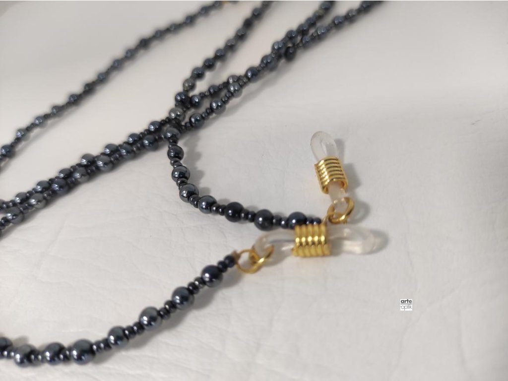 Praktický korálkový řetízek na brýle, který se lehce připevní i sundá. Na řetízku můžete brýle nosit zavěšené kolem krku.