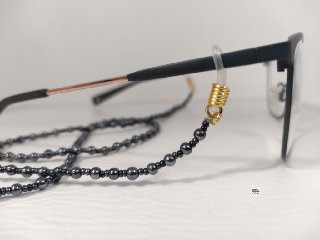 Decentní řetízek na brýle v klasickém stylu s modrými ozdobnými perličkami. Řetízek neobsahuje nikl.